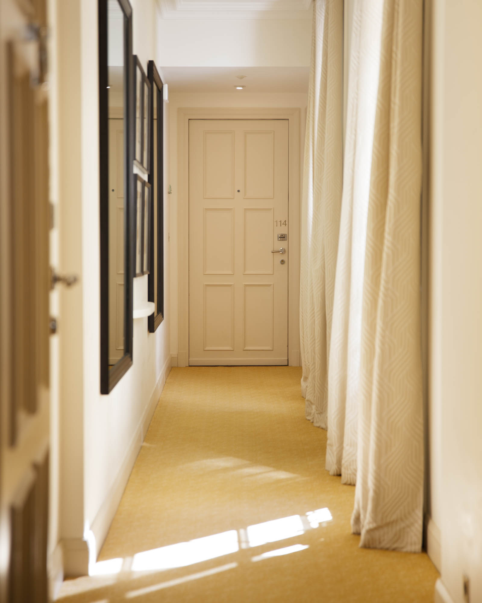 Sur quelques 150 m² incluant une terrasse, La Petite Maison du Burgundy affiche une véritable joie de vivre dans le choix des couleurs lumineuses, et la douceur des teintes et matières utilisées. Au premier niveau, les pièces à vivre, salon et salle à manger, s’ouvrent sur la terrasse de plein pied. A l’étage, un petit salon attenant à la chambre se veut un cocon intime pour les hôtes de La Petite Maison.