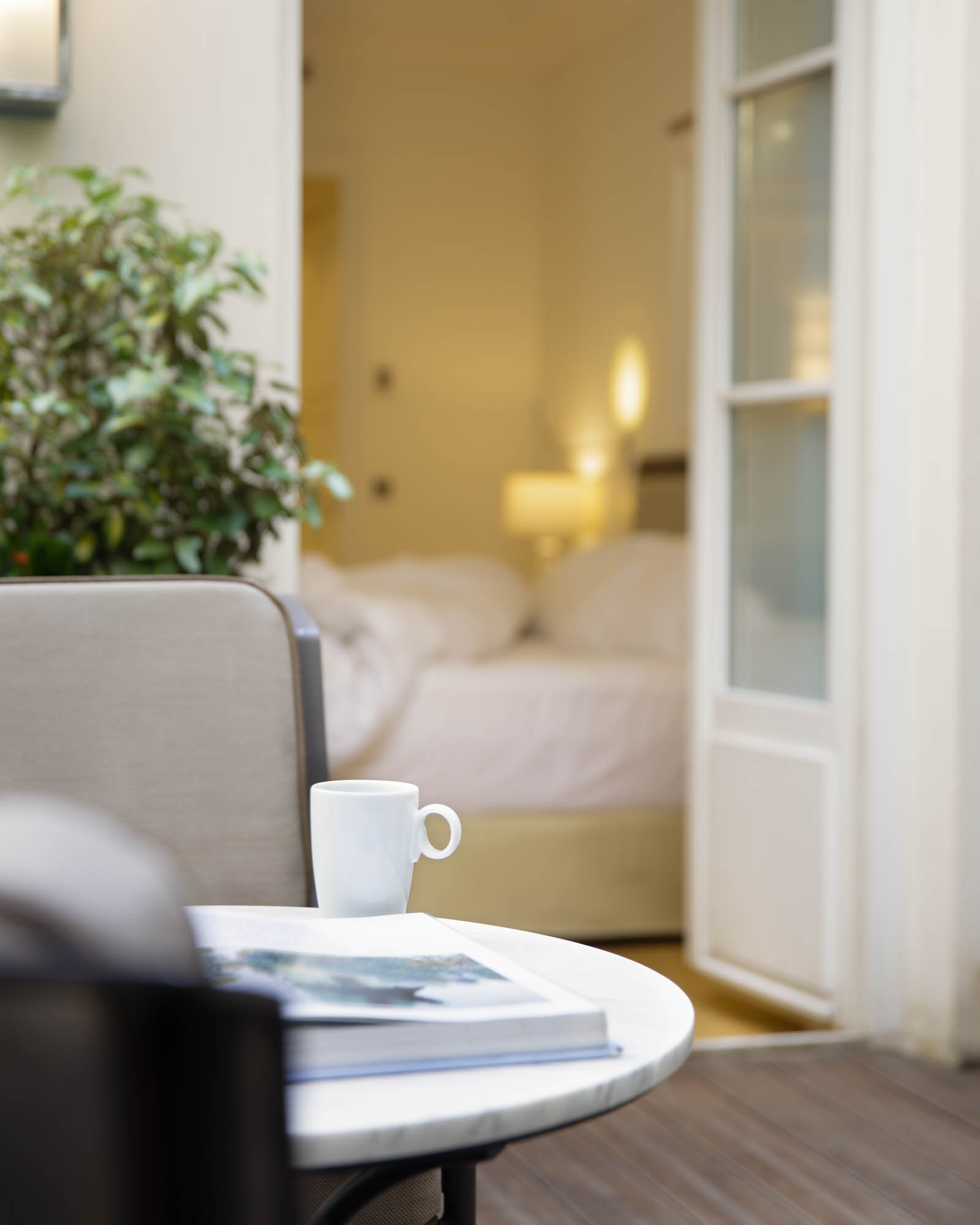 Nichée au fond du Burgundy Paris, La Petite Maison est une élégante bâtisse s’élevant au-dessus du Patio de l'hôtel. Noyée dans la verdure et agrémentée d’une terrasse, cette maison ne se voit pas forcément au premier coup d’œil, et a le mérite de surprendre.